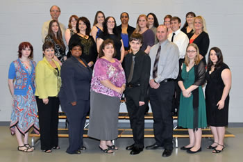 Students from Wicomico County recently inducted into the Alpha Nu Omicron chapter of Phi Theta Kappa at Wor-Wic Community College are shown in the front row, from left, Mardelle Davis of Willards, Catherine Bliss, Jewlett Brown, Linda Cook, Mark Culver, Joshua Engle, Heather Guy and Emily Hasenkopf of Salisbury. In the second row, from left, are Emily Hitchcock, Heather Milligan, Hannah Phillips-Dennis, Laura Sekul, Deane Townsend and Kathy Turner of Salisbury. In the back, from left, are Keith Schilling of Delmar, Md., Amberleigh Geremia and Amanda Smith of Eden, Amelia Handy of Hebron, Liliya Flores of Pittsville, Katelynn Bowden of Sharptown and Kerstin Jenkins of Tyaskin.