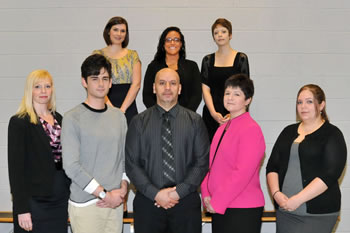 Students from Worcester County recently inducted into the Alpha Nu Omicron chapter of Phi Theta Kappa at Wor-Wic Community College are shown in the front row, from left, Michelle DeMarco, Nathan Gillin, Majdi Labwam, Maria Kimball and Candice Timmons of Berlin. In the back, from left, are Jami Shartzer of Bishopville, Jennie Rodriguez of Ocean City and Melinda Webster of Pocomoke City.